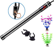 500W Digital Aquarium Heater, Submersible Fish Tank Heater with Readout for Saltwater or Freshwater 60-100-150 Gallon, Thermostat Titanium Safe External Controller, Gift of 2 Artificial Plants
