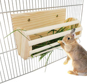 Tfwadmx Bunny Hay Feeder, Rabbit Food Dispenser Wooden Hay Manger Rack Holder for Guinea Pig Chinchilla Hamster