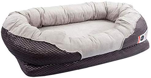 Cama ortopédica gris para perros BarksBar Snuggly Sleeper con espuma ortopédica estriada, cojín con borde acolchado de almohadón extra cómodo y base antideslizante