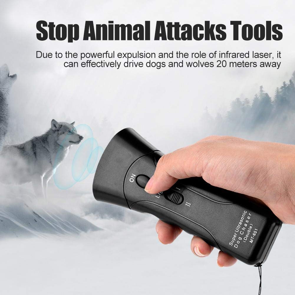 🐶[ Dual-channel Ultrasound Design ] - The product uses two ultrasonic transmitters, which can generate 130dB of ultrasound, which will make the fierce dog panic and keep unfriendly dogs away; protect yourself from dangerous dogs while walking, jogging, or bicycling.