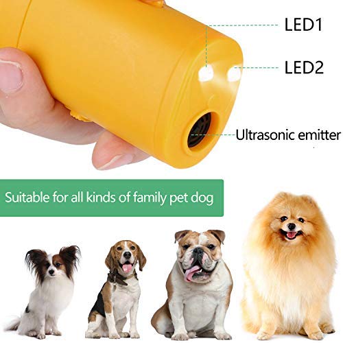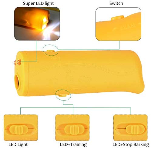 OYEFLY - Repelente de perro de mano, dispositivo 3 en 1 antiladridos con linterna LED, disuasorio ultrasónico para perros y dispositivo de entrenamiento para perros con tapón de corteza - Herramienta de entrenamiento/parada de ladridos
