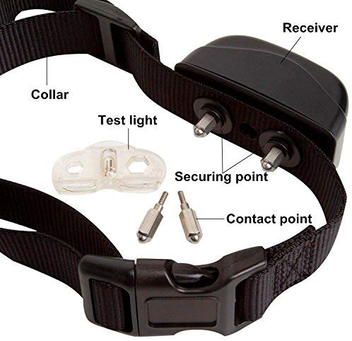Recargable y resistente al agua: tanto el transmisor como el receptor son recargables. Tanto el receptor como el cuello ajustable son resistentes al agua. El receptor y el transmisor del collar se pueden cargar y también son resistentes al agua; correa de cuello ajustable, se adapta a tamaños de cuello de 38 a 22.0 in.