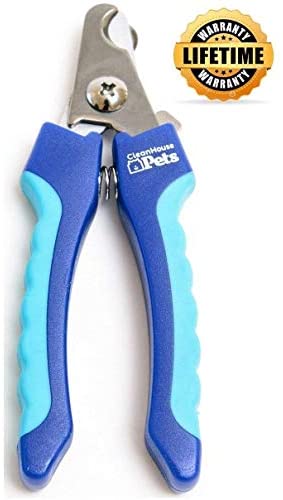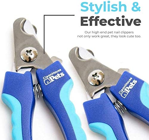 Cortaúñas para perros y gatos de CleanHouse, con protección de seguridad para mascotas y cerradura, acero inoxidable, muy fácil de usar, el mejor cortauñas para mascotas para animales. Tamaño pequeño y grande.