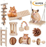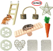 YUEPET Chinchilla Toys Guinea Pig Gerbil Rat Hamster Chew Toys Accessories Natural Wooden Seesaw Ladder Teeth Care Molar Toy for Bunny Rabbits Gerbils (Pack of 10)