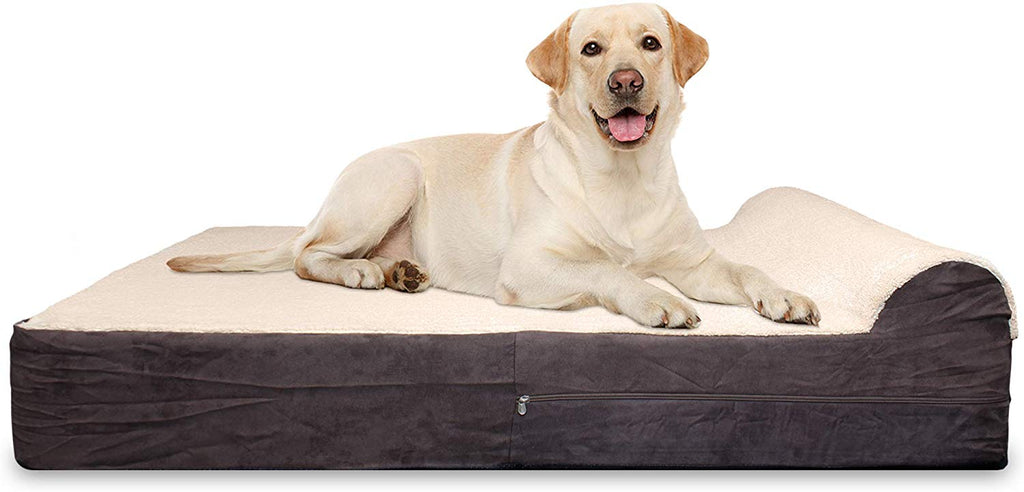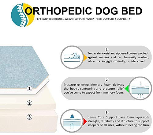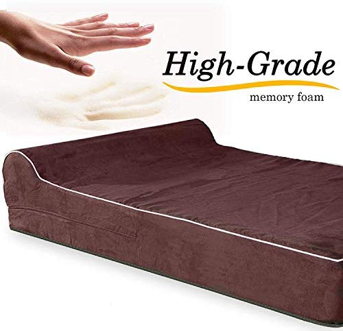 Cama para perro de espuma de memoria ortopédica de alta calidad de 7 pulgadas de grosor con almohada y funda extraíble fácil de lavar con parte inferior antideslizante. Incluye forro impermeable para perros grandes.