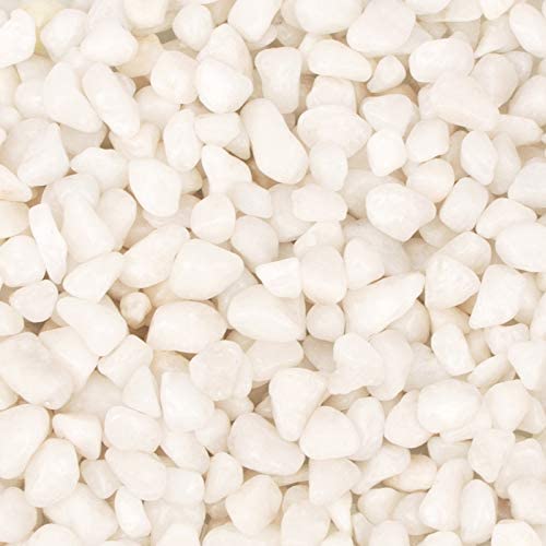 Grava natural pulida: estas rocas de río son naturales ligeramente pulidas para un efecto suave, resistente a la decoloración para una belleza duradera. El color de esta roca de río es natural por lo que puede incluir una variedad de diferentes tonos de color blanco, (las rocas son naturales y como resultado algunas pueden ser rotas o fuera de forma, gruesas o finas, ovaladas o redondas).