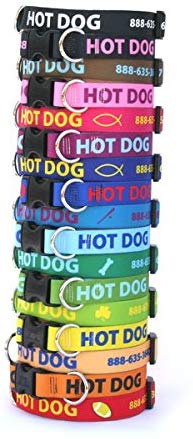 Collar de perro bordado: esta alternativa al bordado es preferible por muchas razones, incluyendo: sin hilos deshilachados o tirados, diseños transparentes de alta definición, docenas de colores, superficie lisa es perfecta para perros activos, y simplemente dura más tiempo.