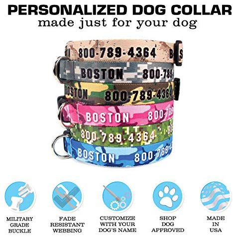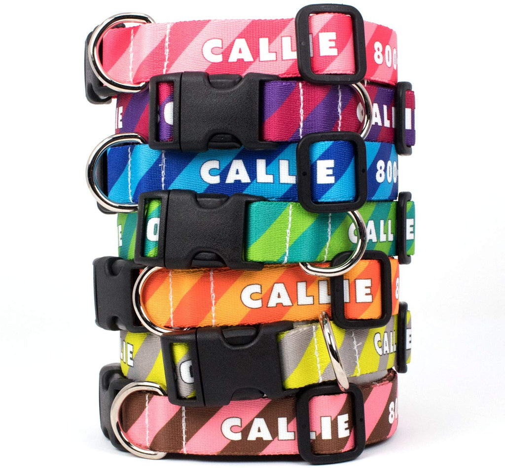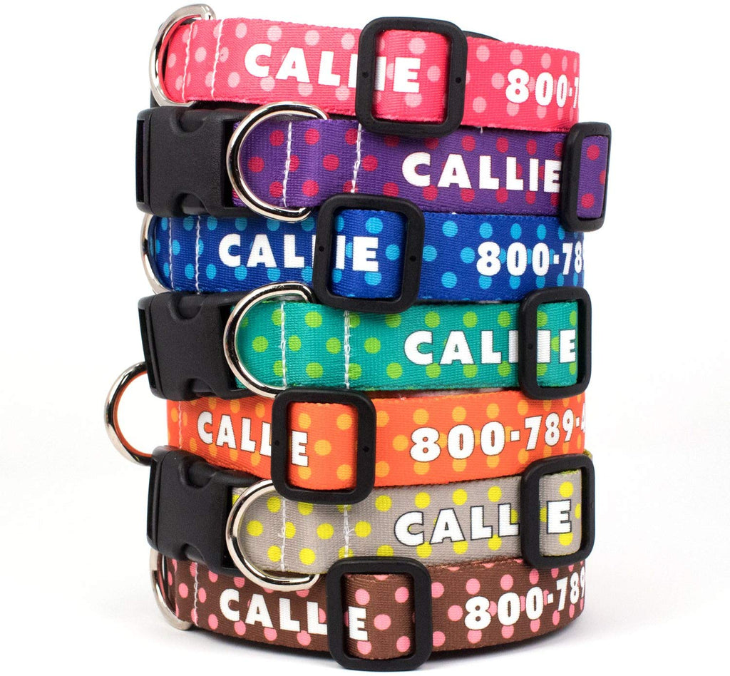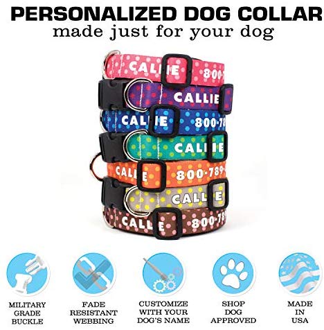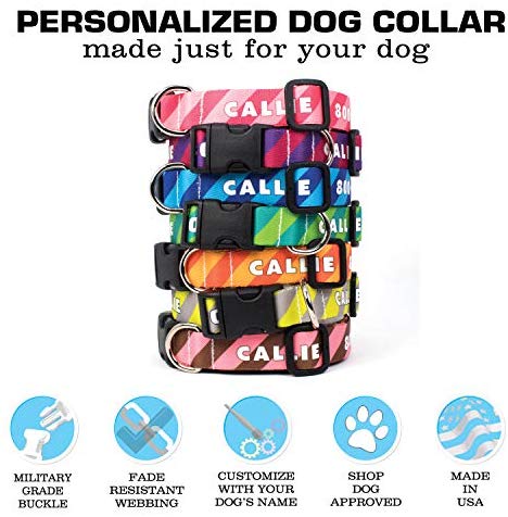 Collar de perro personalizado de Buttonsmith – Impresión permanente resistente a la decoloración, hebilla de grado militar resistente al óxido, resistente a olores y moho, elección de 5 tamaños, fabricado en los Estados Unidos
