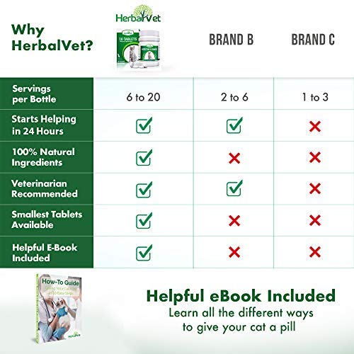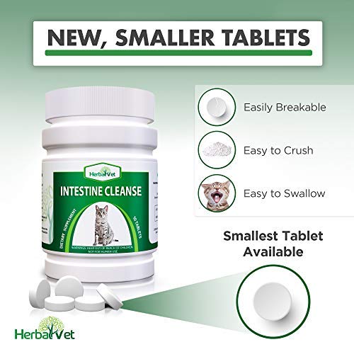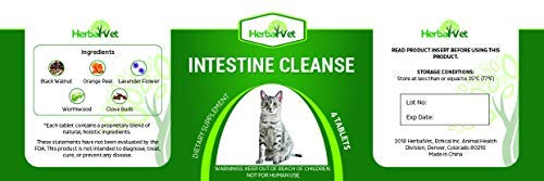 HerbalVet 10 Tablets Cat Intestinal Cleanse | Cat Dewormer Alternative | Cleansing Tablets for Cats, Promotes Intestinal Health | 4 Tablets, Works for Kittens | Helpful E-Book Included