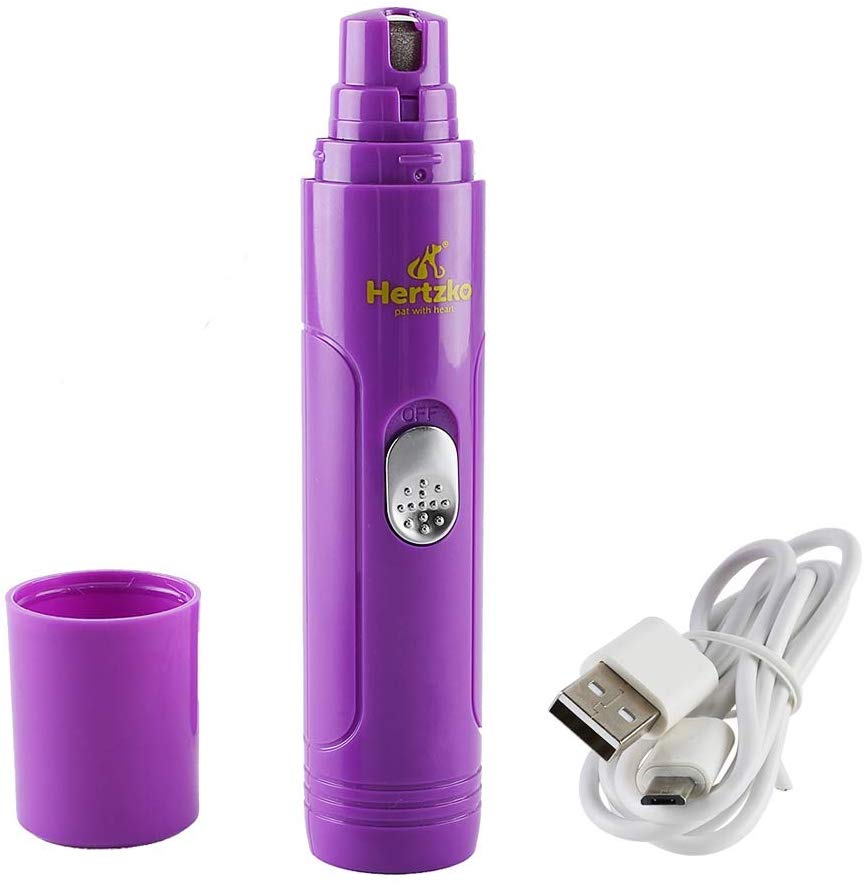 Lima de uñas eléctrica Hertzko, para cortar uñas de forma suave e indolora, para mascotas, desbarbado, moldeador y suavizar, para perros, gatos, conejos y aves, batería portátil e incluye cable USB