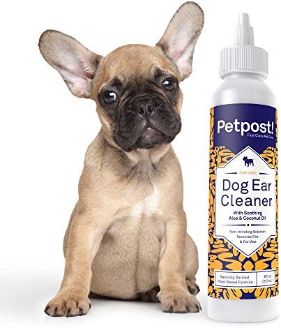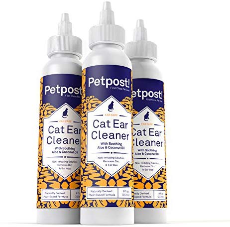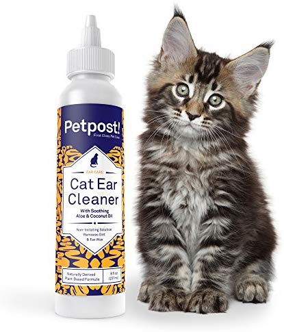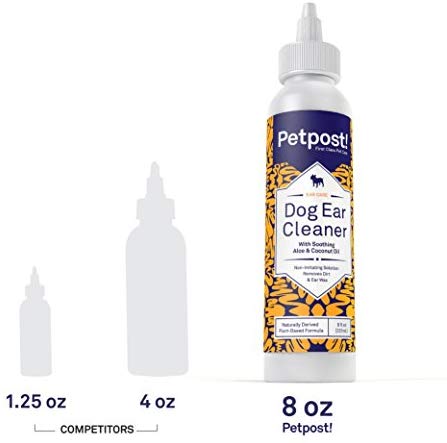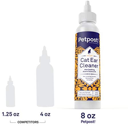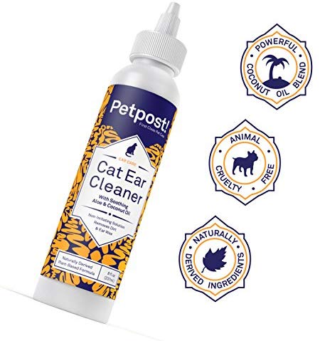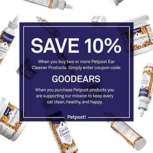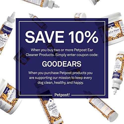 Toallitas limpiadoras de oídos de la marca Petpost para perro y gato, solución de aceite de coco natural, el mejor remedio para los ácaros de oído, cándida e infección en oídos que casa cera, sin alcohol ni irritantes (8 onzas)